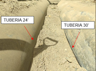 Las tuberías, dispuestas en paralelo y separadas por aproximadamente 40 cm, fueron equipadas con fibra óptica instalada en posiciones estratégicas (3 hr, 9 hr y 12 hr).