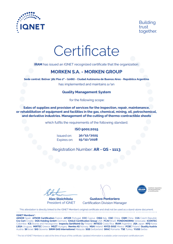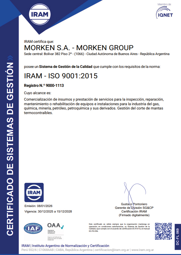 Morken Group es una organización dedicada a la provisión de insumos y servicios especializados para la inspección, reparación, mantenimiento y rehabilitación de equipos e instalaciones en las industrias del gas, química, petróleo, petroquímica y sus derivados, orientada permanentemente a lograr la plena satisfacción de sus clientes.